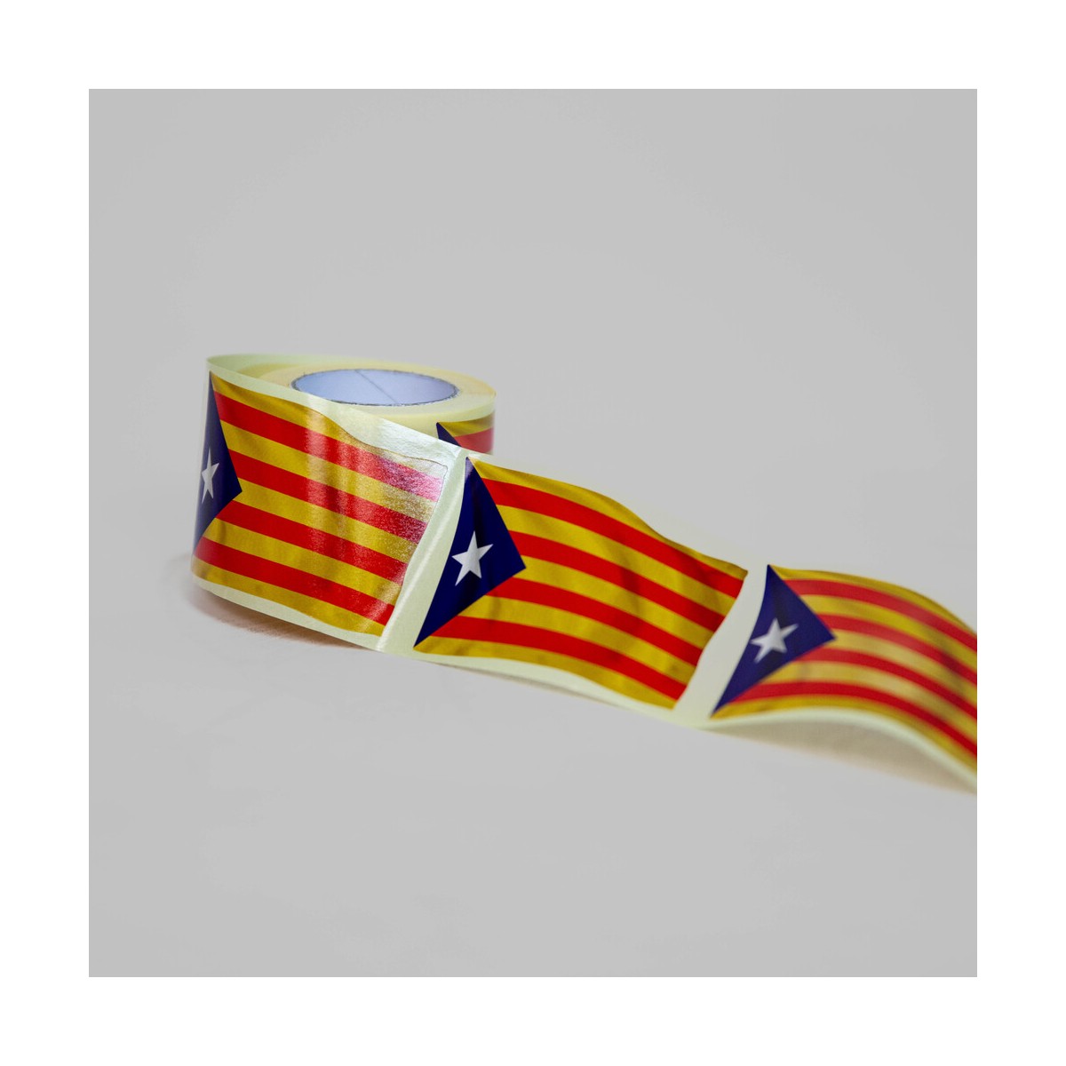 L'adhesiu de l'estelada blava independentista. 200 adhesius presentats en una bobina. Cada adhesiu mesura 7 x 10 cm.