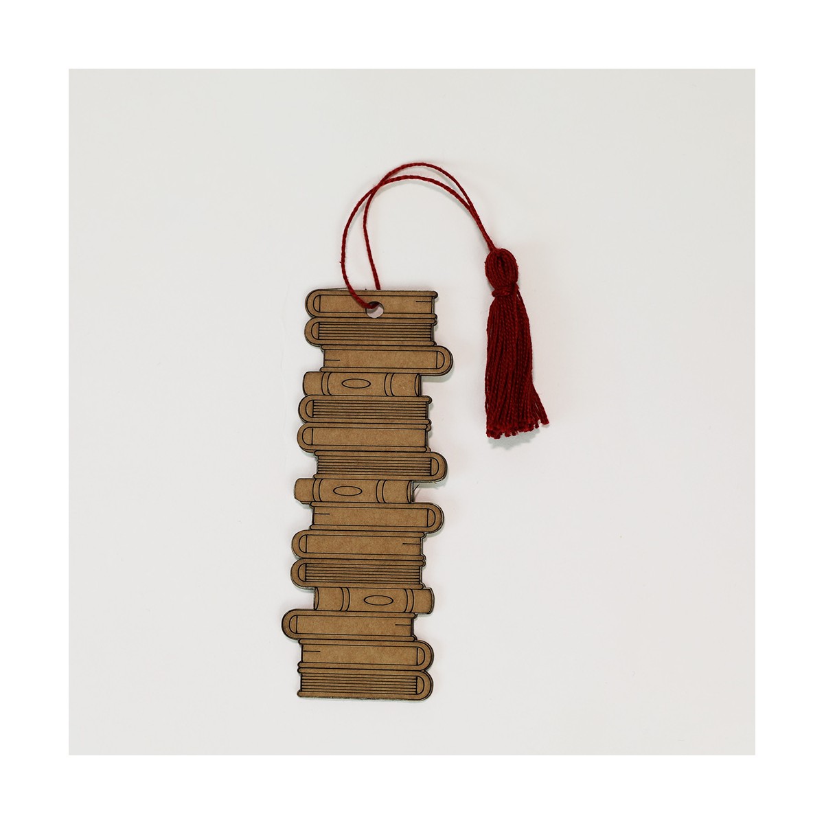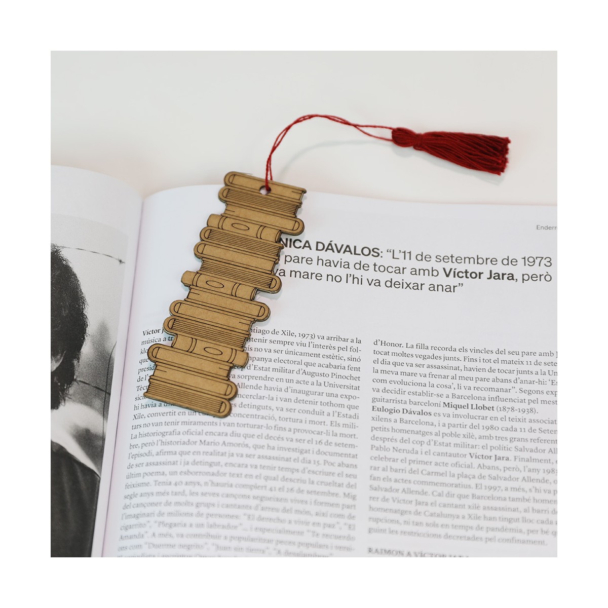 Aquest punt de llibre clàssic és ideal per marcar el punt de lectura gràcies al pompó. El punt és la representació d'una pila de llibres feta en kraft i marcat a làser.